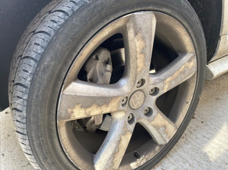 Brake dust contamination isn’t damage per se, but if left to accumulate, it bonds to the wheel surface and becomes extremely difficult to remove. The metallic particles in brake dust are corrosive and can etch into the wheel finish over time.